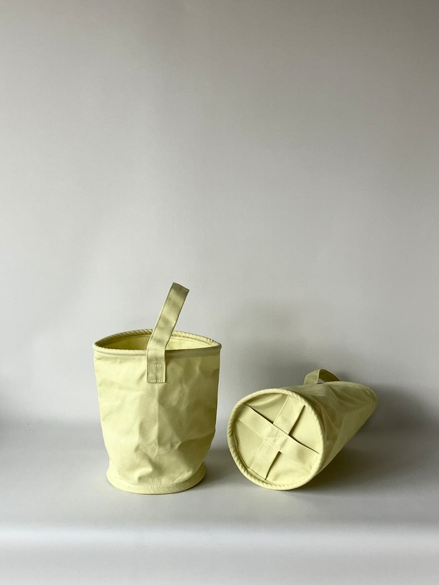 品番:SUN-41 サイズ:4ℓ(直径16cm×高さ24cm ) 日本製 小型船舶の法定備品として使われている10ℓサイズの原型を元に直径を小さくリサイズしました。容量としては携帯、長財布、ペットボトルなどがちょうど入るサイズです。布バケツ本来のミニマルな美しさと使いやすさのバランスのとれたモデル。