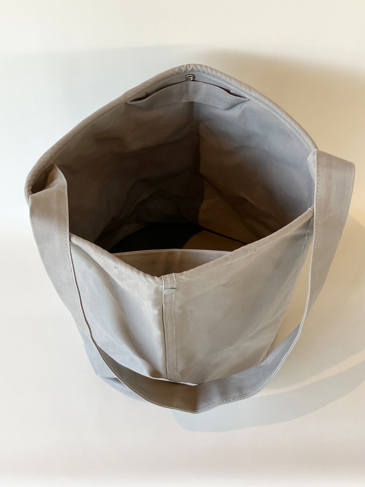 昔から船舶用に使われている布バケツを暮らしの道具としてデザインしたシリーズ。普段使いに使いやすい25ℓサイズにショルダーストラップと内ポケットをつけバッグとして色々なシーンで持ちやすい仕様にしました。